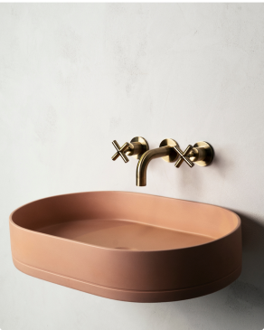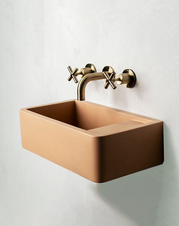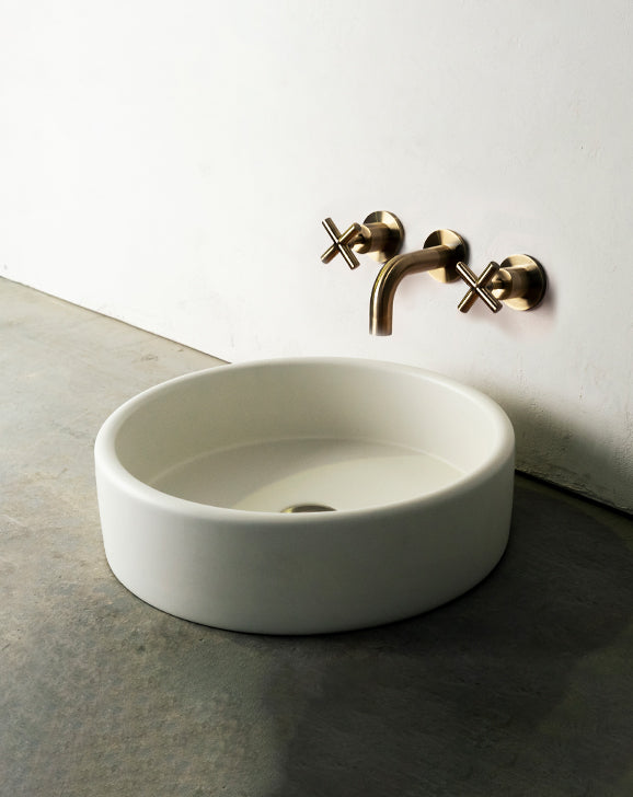 “The Nood concrete basin was the perfect finishing touch to our little bathroom. We had a tiny space to work with so we stripped it all back and made the natural materials and neutral colour palette the focus. The curved countertop basin combined with the wooden vanity softens the aesthetic and creates the perfect tension between brutalism and modern boho design.”